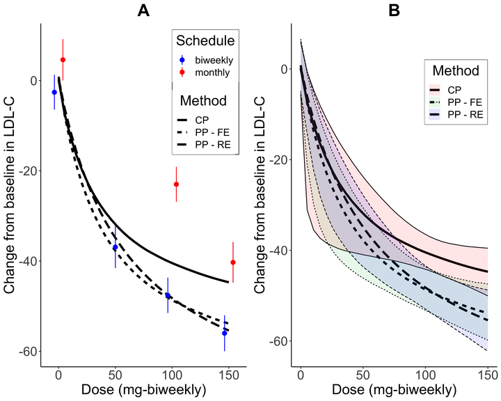 Recently, phase II trials with multiple schedules (frequency of administrations) have become more popular, for instance, in the development of treatments for atopic dermatitis. If the relationship of the dose and response is described by a parametric model, a simplistic approach is to scale doses from different schedules to a common unit and pool all rescaled doses. However, this approach ignores the potential heterogeneity in dose–response curves between schedules. A more reasonable approach is the partial pooling, that is, certain parameters of the dose–response curves are shared, while others are allowed to vary. Rather than using schedule-specific fixed-effects, we propose a Bayesian hierarchical model with random-effects to model the between-schedule heterogeneity with regard to certain parameters. Schedule-specific dose–response relationships can then be estimated using shrinkage estimation. Considering Emax models, the proposed method displayed desirable performance in terms of the mean absolute error and the coverage probabilities for the dose–response curve compared to the complete pooling. Furthermore, it outperformed the partial pooling with schedule-specific fixed-effects by producing lower mean absolute error and shorter credible intervals. The methods are illustrated using simulations and a phase II trial example in atopic dermatitis. A publicly available R package, ModStan, is developed to automate the implementation of the proposed method (https://github.com/gunhanb/ModStan).